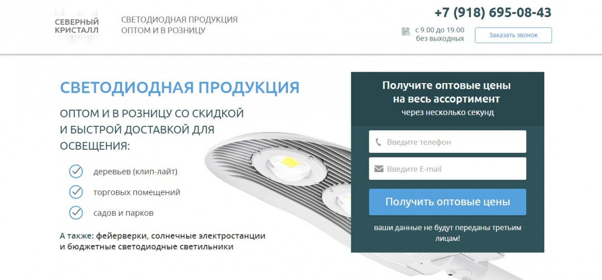 Лендинг компании по продаже светодиодной продукции
